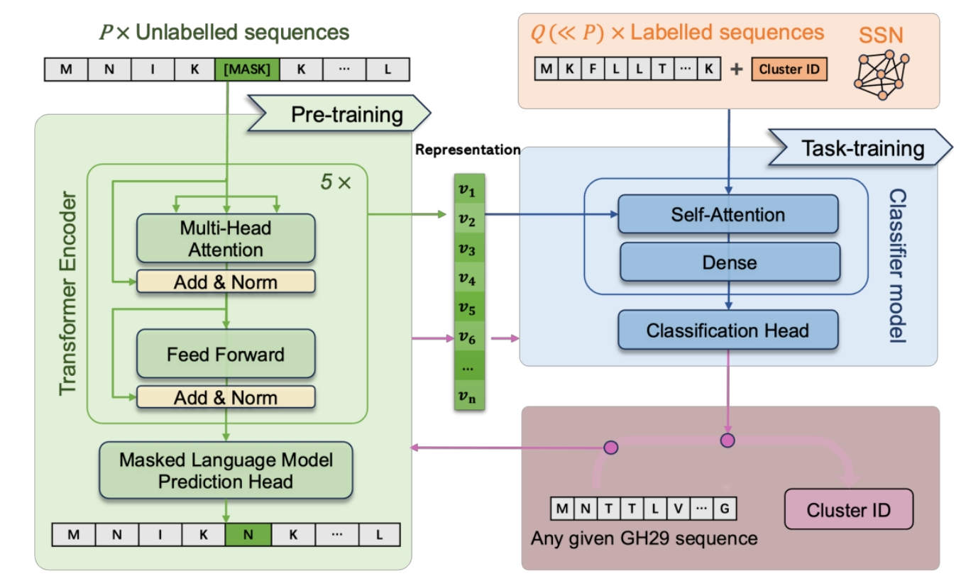本项目与广州、英国等地的生物研究所开展合作,利用深度学习模型预测该家族内未知酶可能属于的类别及功能。