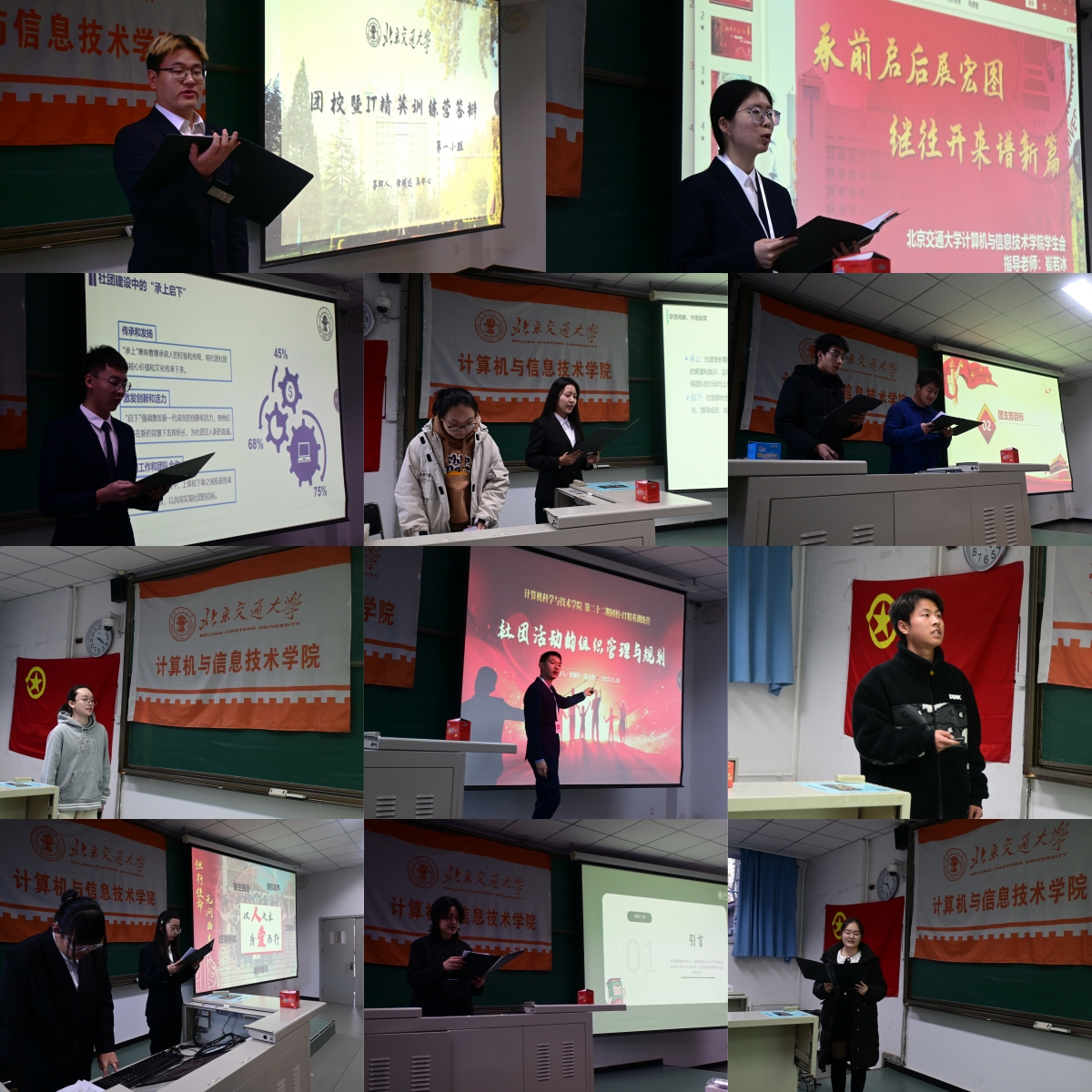 至此,本期团校已全部结束既定安排。本次团校以学生骨干能力素质提升、团结协作意识提高、思想品格锤炼、专业领域认知等为主要内容,在持续四周的时间内,面向全员一百多为团学骨干,通过“自学、研学、帮学”等方式,分别邀请校院学生骨干就办公软件、宣传技能、文案写作等进行集中授课提高学生工作能力、开展团体辅导增强团结协作、邀请马克思主义学院教师讲授主题团课凝心铸魂、前往中国人民抗日战争纪念馆实地学习坚定信仰坚守担当、前往知名企业参访初探职场。