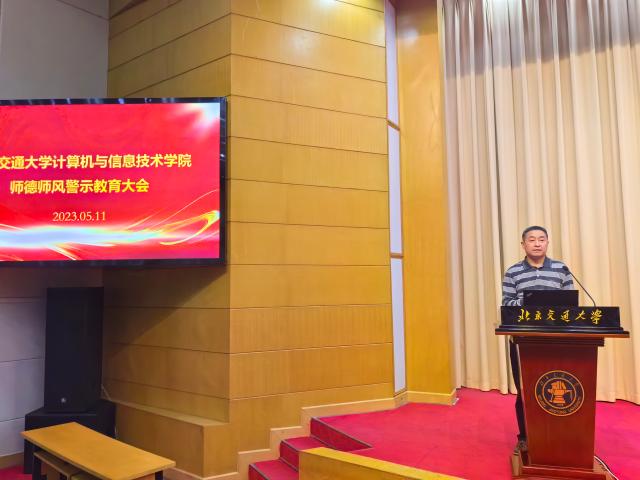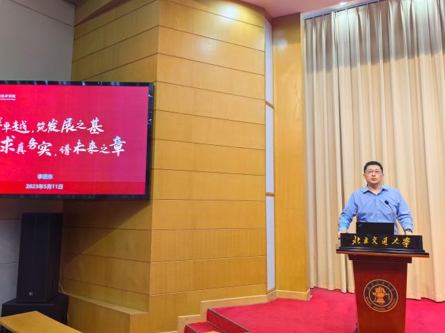 2023年5月11日下午,澳门正规电子游戏平台在科学会堂召开全院大会,面向全体教职工汇报2022年学院整体工作、科技创新工作开展情况,并进行师德师风教育培训。此次大会由学院党委书记贾卓生主持,院长蔡伯根、副院长李浥东主讲。