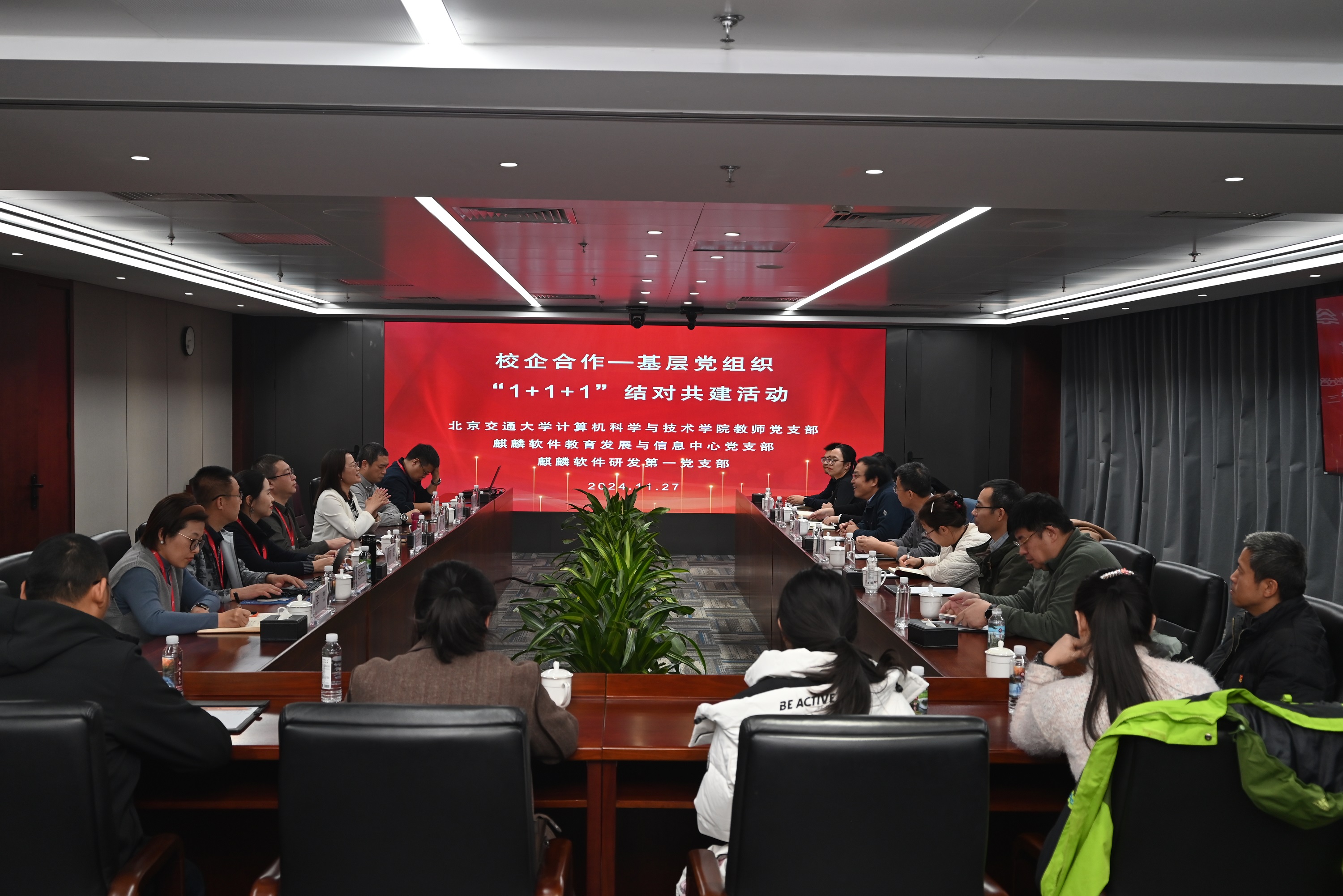 为进一步发挥党建引领作用、加强基层党组织建设、探索校企合作新模式,澳门正规电子游戏平台与麒麟软件有限公司(以下简称“麒麟软件”)、中电科金仓(北京)科技股份有限公司(以下简称“电科金仓”)分别于11月27日、28日开展了校企党支部结对共建活动。此次活动旨在发挥党组织战斗堡垒作用及党员先锋模范作用,促进校企双方在党建工作、人才培养、技术创新等方面的深度合作,实现资源共享、优势互补、共同发展。学院党委书记贾卓生、企业党建、业务相关负责人、党员代表和业务骨干以及学院教师党支部书记、委员及系所负责人参加了此次活动。