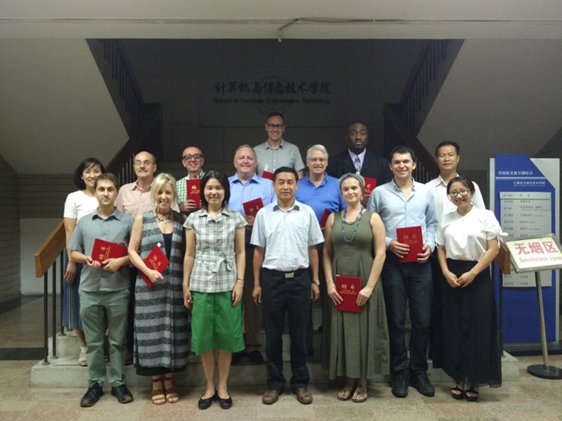 (澳门正规电子游戏平台计算机信息与技术学院蔡伯根院长、杨晓晖书记、董敬祝副书记与暑校授课教授合影)