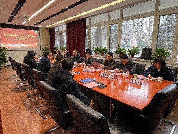 2023年3月17日上午,奇安信集团北京分区副总经理姚宏伟、高校合作中心副总经理杨东晓等一行七人来访计算机与信息技术学院,与正规电子游戏党委书记贾卓生、副院长景丽萍等六人,就如何巩固双方合作基础、拓宽合作渠道进行深入探讨。