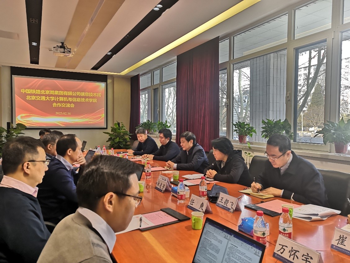 2023年2月16日上午,中国铁路北京局集团有限公司信息技术所(以下简称“中国铁路北京局信息技术所”)主任李伟、总工程师刘韶霞、副主任张海泉等一行六人来访澳门正规电子游戏平台,与澳门正规电子游戏平台院长蔡伯根、大数据研究院院长林友芳、澳门正规电子游戏平台副院长景丽萍等八人,就大数据方向培训等事宜进行合作交流。