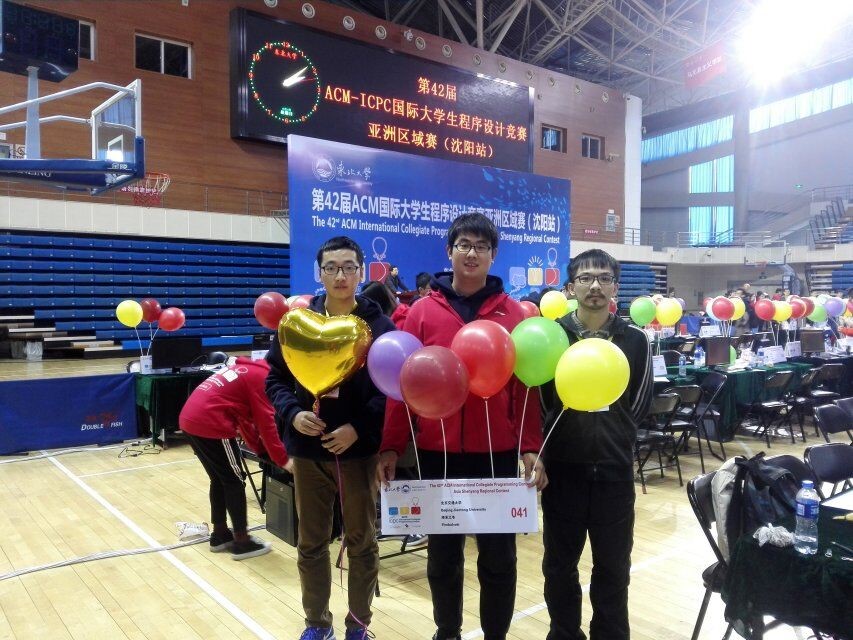 本次竞赛由ACM-ICPC亚洲区组委会主办,授权东北大学承办沈阳站的比赛。参赛阵容亦非常强大,在前期网络赛筛选的基础上,有来自国内125高校的180支队伍参加了此次现场赛。最终北京大学的“全给党”队伍以解出13题中的10题的解题数量优势捧得冠军奖杯,来自北京航空航天大学和杭州电子科技大学的队伍分货亚军和季军。正规电子游戏此次派出了两支参赛队伍,分别是由高洪杰(14281058)、王之博(14272082)、张彦潇(14281103)组成的“终末之冬”队和由王婉铃(15301158)、付恒岩(16281190)、郝敬宇(16281097)“喵之萌杀”队。此外,同一时间在由哈尔滨哈尔滨理工大学承办的第3届中国大学生程序设计竞赛(CCPC)中,正规电子游戏也派出了由赵思达(16301057)、陈炳君(16281031)、胡祖俊(17301095)三人组成的“小富即安”队参赛。两场比赛中,新老参赛队员沉着冷静、奋力发挥,最终“终末之冬”获得了一枚银奖,位于银奖前列,“小富即安”队因罚时过多与奖牌失之交臂。