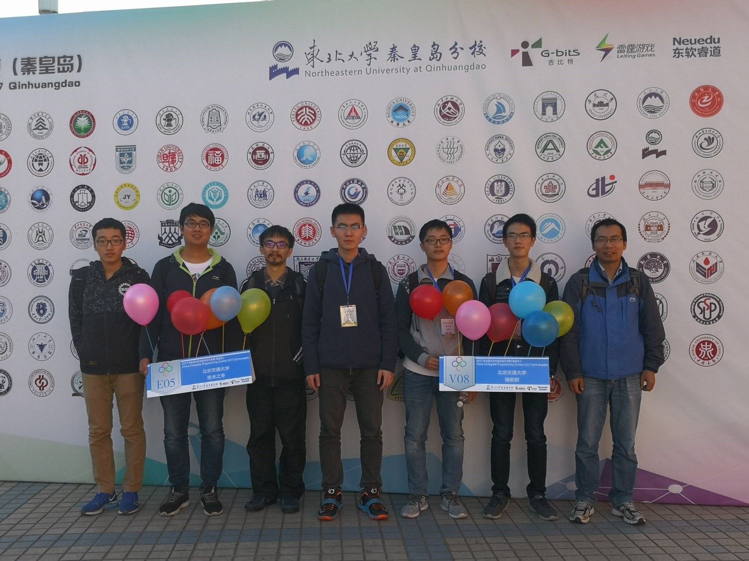 CCPC秦皇岛站参赛队伍(左起张彦潇、高洪杰、王之博、王天舒、郑黎明、何卫锋、黄华-教练)