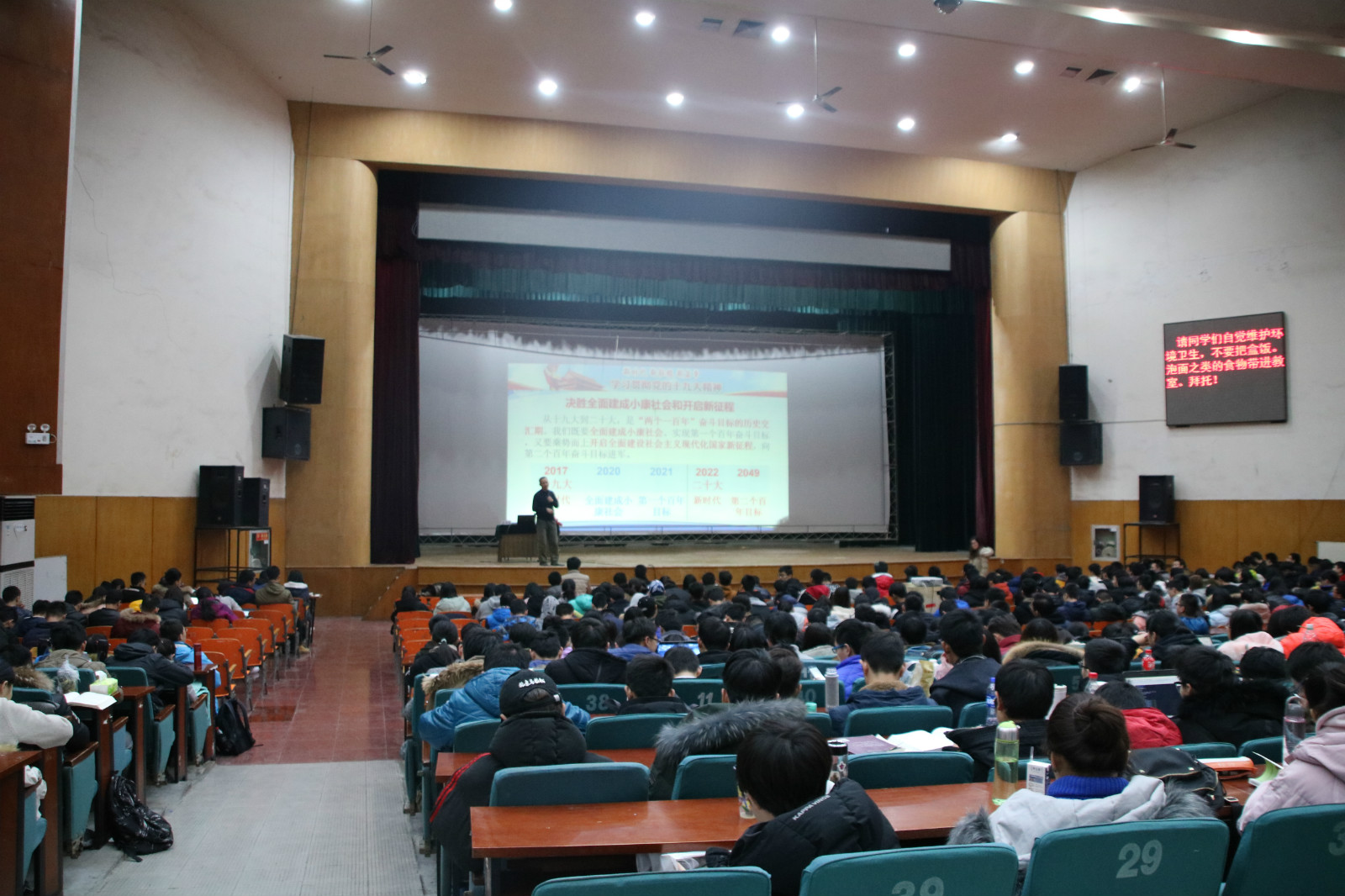 2017年12月27号晚,计算机与信息技术学院“CIT名师大讲堂”系列活动第六十四讲在东区礼堂顺利举办。此次活动邀请到澳门正规电子游戏平台马克思主义学院副教授李效东老师做题为“新时代、新征程、新篇章”的主题讲座。澳门正规电子游戏平台党委副书记王浩业出席讲座,学院团委老师和全体本科生参加了此次活动。
