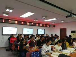 2018年10月26日19:00,“IT菁英班”开班仪式在九教北307B举行。中科院计算所教育处李琳处长、张平老师、王琪老师、澳门正规电子游戏平台副院长李清勇老师、党委副书记王浩业老师、刘真老师出席本次仪式。首届“IT菁英班”全体成员参加了本次仪式。