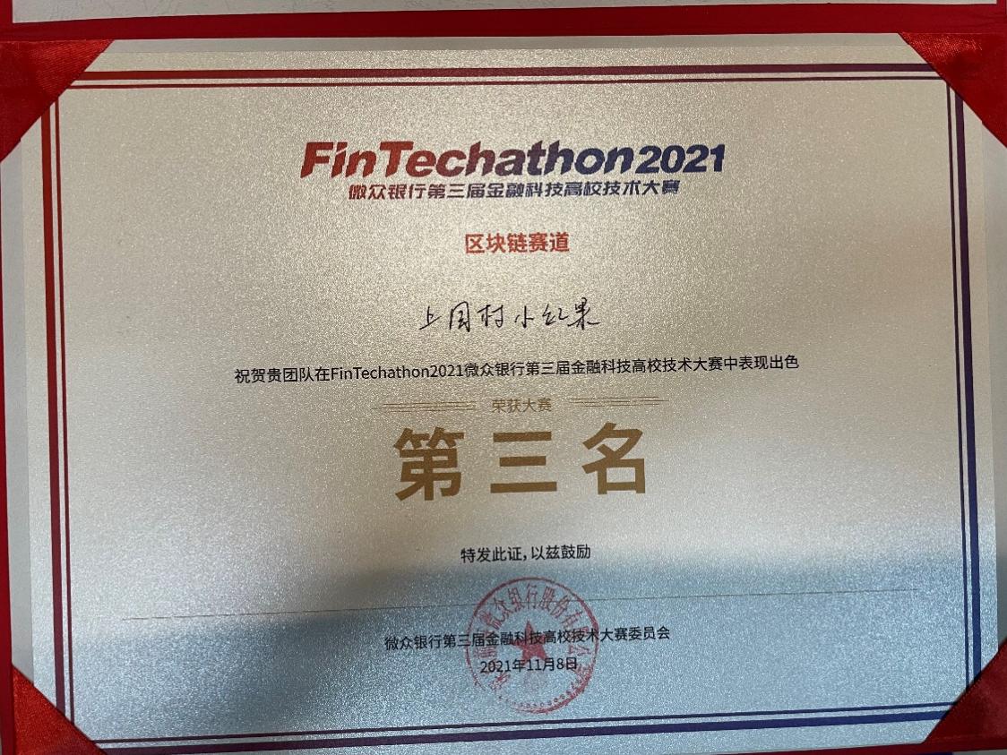 信息安全团队在微众银行第三届金融科技高校技术大赛勇夺第三名