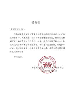 澳门正规电子游戏平台信安团队参与国家重大网络安全试验测试活动获感谢信