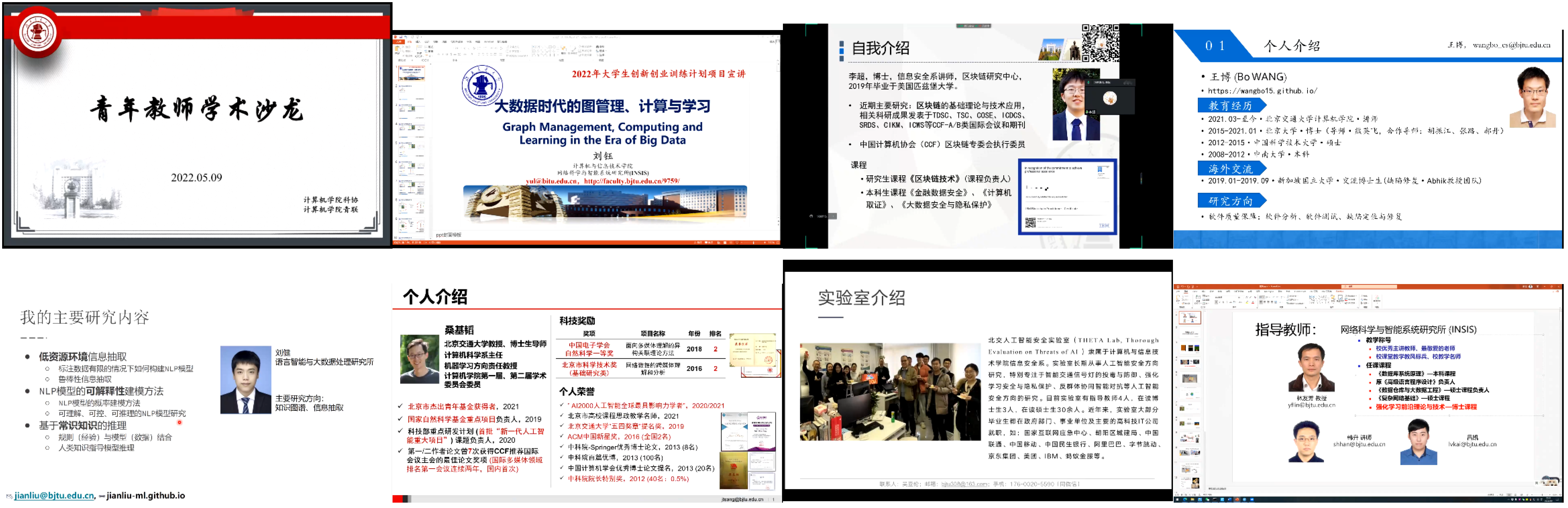 除了指导教师团队介绍外,在5月9日的“青年教师学术沙龙”活动中,7位青年教师代表为同学们带来精彩的学术报告,深入浅出地为学生们讲解了自然语言处理、软件质量保障、大数据的图管理与计算、人工智能安全等当前热门研究方向,并根据自身研究设计多个适合本科生的大创题目。