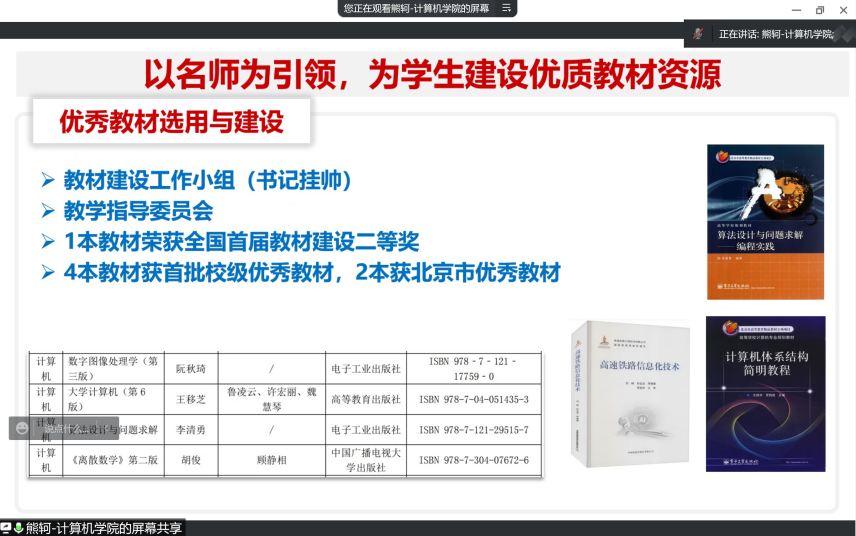 2022年5月18日,由北京高等教育学会计算机教育研究分会等单位联合主办的“十四五”高等学校新工科计算机类专业系列教材启动会议暨“十四五”普通高等教育本科国家级规划教材选题征集申报在线会议举行。会议由中国铁道出版社教材出版中心副主任秦绪好主持,北京高等教育学会计算机教育研究分会副理事长兼秘书长宋旭明、河南省高等学校计算机教育研究会副理事长郑州工程技术学院副校长甘勇、河北省计算机教育研究会理事长滕桂法、河北农业大学信息科学与技术学院院长、中国铁道出版社教材出版中心主任荆志文等专家进行了致辞。会议主题为打造高等教育新工科计算机类专业一流课程教材。高校专家、学者、企业代表、编审委员会专家、计算机教育研究会领导等参加了会议。