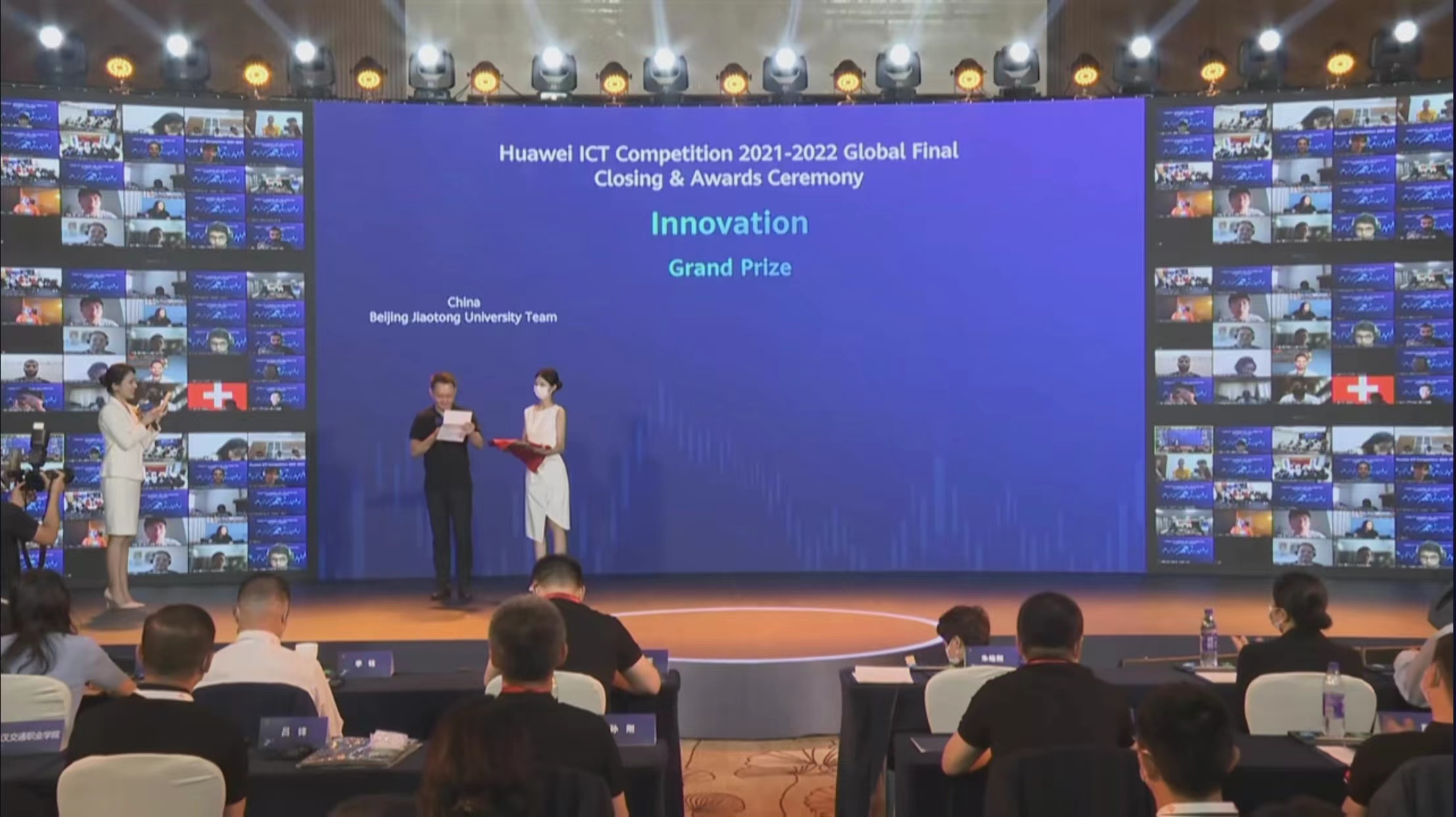 2022年6月17日至20日,华为ICT大赛2021—2022全球总决赛成功举办,并于6月25日在深圳采用线上线下混合方式举办了闭幕式暨颁奖典礼。正规电子游戏卢思洋老师指导的队伍(2019级本科生:赵路路、甘振良, 21级研究生王志炜)获华为ICT大赛2021-2022全球总决赛创新赛特等奖,在此之前已获得了华为中国大学生ICT大赛2021·创新赛全国一等奖的优异成绩。