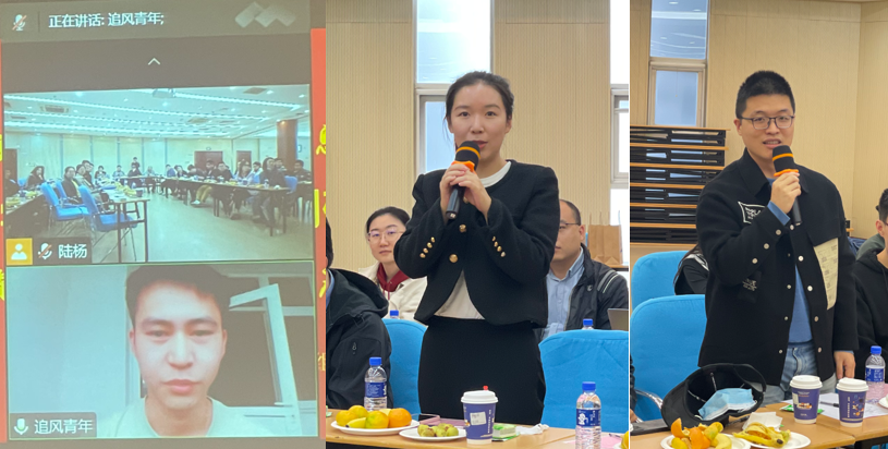 随后,三位新教师进行了自我介绍。马继昌(左)博士毕业于天津大学,目前主要从事无人车方向的研究;任申元(中)博士毕业于英国华威大学,并在牛津大学做了三年博后,目前主要从事高性能计算方向的研究;王伟(右)博士毕业于意大利特伦托大学,并在瑞士洛桑联邦理工大学做了三年博后,目前主要从事计算机视觉方向的研究。三位新教师受到与会者的热烈欢迎,优秀青年教师的不断加入为学院发展注入了新的力量。