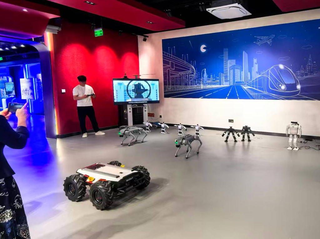 9月22日上午,澳门正规电子游戏平台人工智能与未来交通技术科普教育基地受邀参与澳门正规电子游戏平台交通运输科学馆焕新开馆仪式和科普展示,科普基地周围研究员向交通运输部科技司领导介绍了具身智能在实验教学和科普方面的成果,志愿者们操作机器狗与机器人用生动灵活的舞步为交通运输馆注入了“科技活力”。搏击机器人丰富多变的拳脚动作、商服机器人的太极舞步,吸引了在场嘉宾驻足停留,机器狗用 “握手”,“比心”等动作和在场嘉宾们互动。志愿者们以生动的展示方式科普人工智能领域的前沿技术。