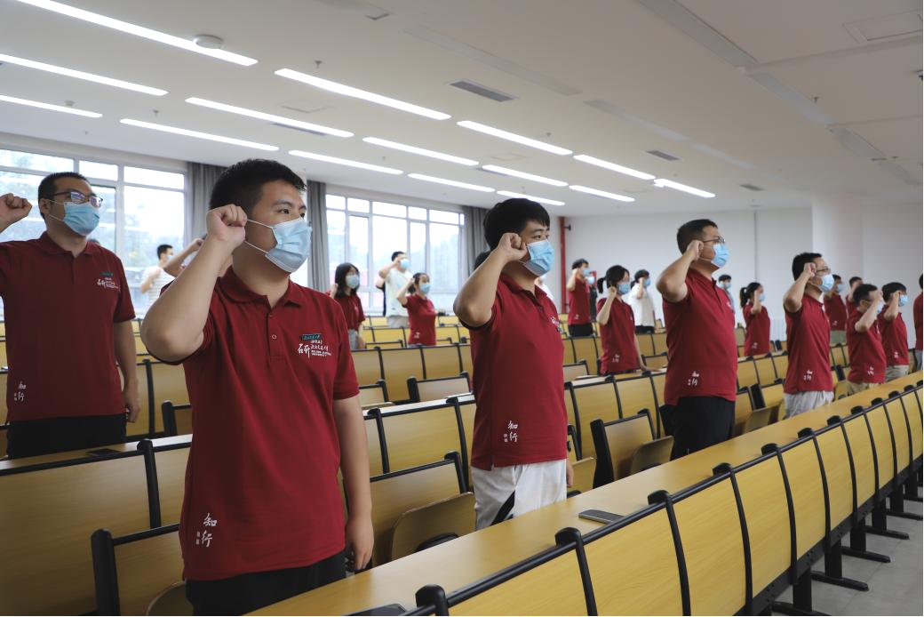澳门正规电子游戏平台2021级唐山班全体新生在林瀚峰同学的带领下庄严宣誓,共同承诺身为交大学子,将秉承知行校训,弘扬交大传统,饮水思源,爱国荣校,勇做走在时代前列的奋进者、开拓者、奉献者,为实现成才梦、交大梦、中国梦而努力奋斗!