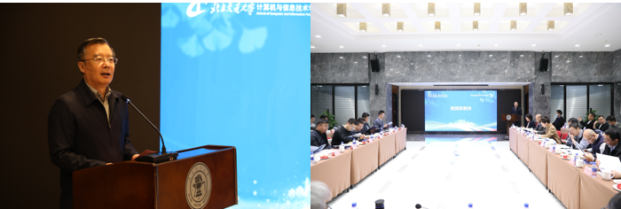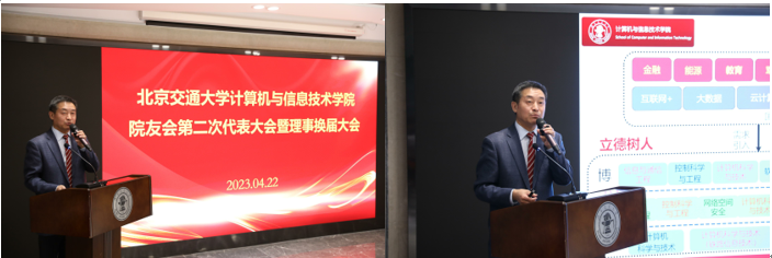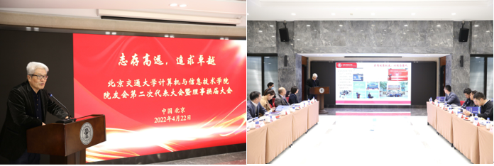计算机与信息技术学院院长蔡伯根介绍了学院组成、师资队伍、人才培养、科学研究、社会服务、校企合作等各方面情况,展望了学院的未来发展,并对澳门正规电子游戏平台院友们提出了深切期盼。