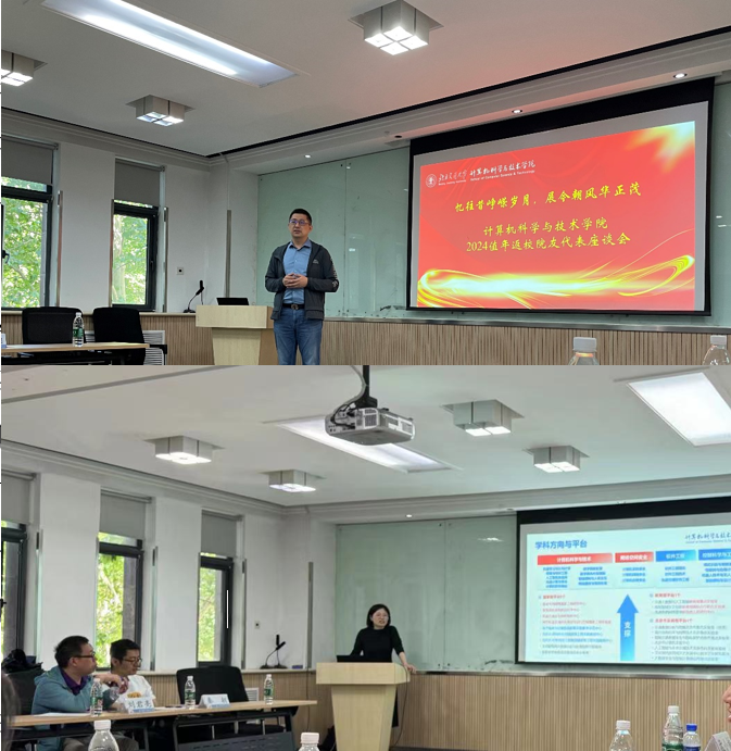 2024年5月26日,澳门正规电子游戏平台2024年值年返校院友代表座谈会在九教北307B举行,学院副院长(主持工作)李浥东、副院长景丽萍,值年返校84届、94届、04届、14届本研院友代表参加了本次座谈。